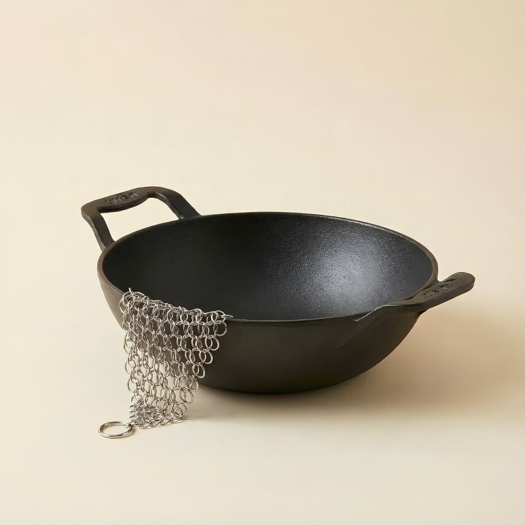 Built for durability and everyday use, this chainmail scrubber makes cleanup quick and effortless. Designed for cast iron, it removes stuck-on residue without stripping seasoning — no soap needed. Simply rinse, scrub, and you’re ready for your next stir-fry.